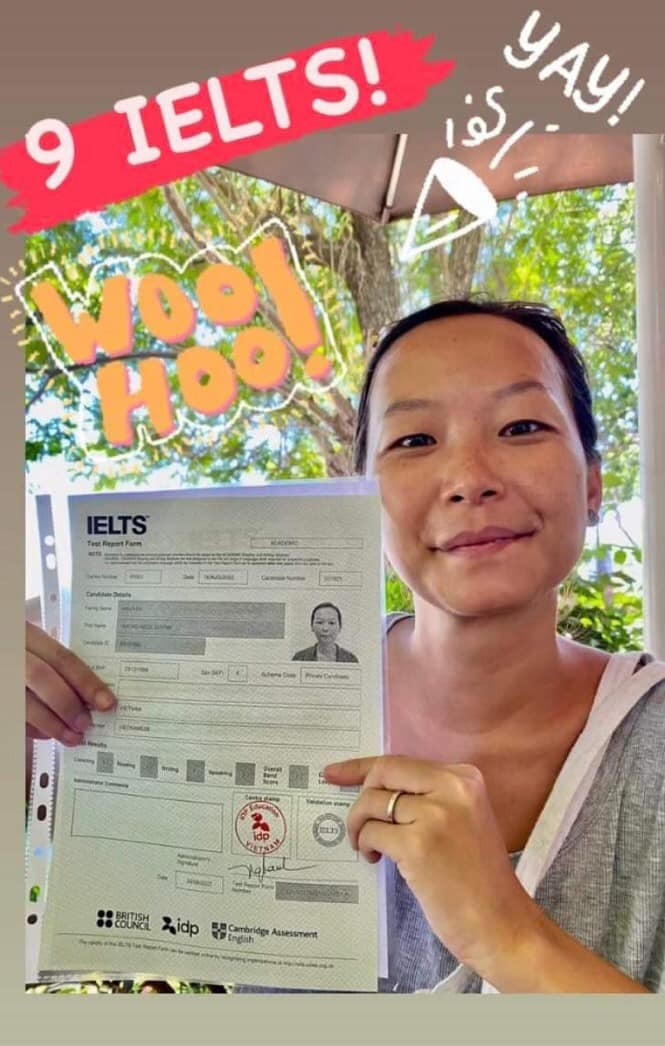 Mới đây, Nguyễn Hương Ngọc Quỳnh đã đạt 9.0 IELTS overall, trở thành một trong số ít người tại Việt Nam đạt được điểm số tuyệt đối của chứng chỉ này.