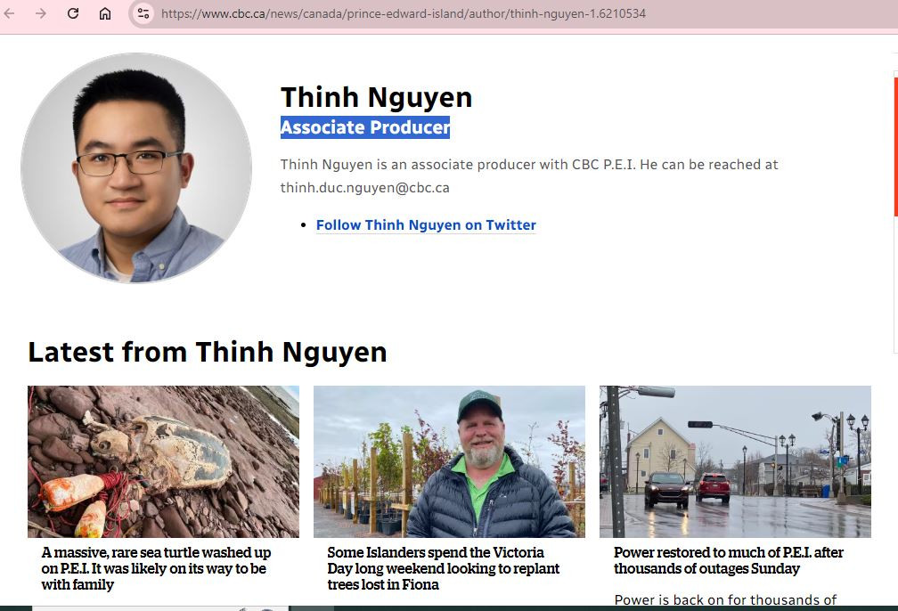 Nguyễn Đức Thịnh có nhiều bài viết trên trang CBC của Canada. Ảnh chụp màn hình trang Cbc.ca